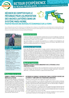 Suite à des difficultés techniques (santé du troupeau, potentiel modeste des terres) et financières (frais en hausse, baisse du prix du lait), Guy a souhaité faire évoluer fortement le système d’élevage depuis 2015, passant à un système de plus en plus herbager et pâturant pour être le plus autonome possible. Guy a d’abord fait des dérobés, puis ressemé des prairies à la place du maïs (le maïs a ainsi été réduit progressivement de 30 à 13 ha) pour produire de l’ensilage d’herbe et avoir un bloc de pâturage plus conséquent autour du bâtiment, en plus des prairies naturelles. Différents mélanges ont été implantés, ray-grass, trèfle, dactyle ou fétuque, plantin, chicorée. Mais la conduite du pâturage n’était pas satisfaisante, car les repousses après la fauche tombaient rapidement en panne et les prairies se dégradaient trop vite.
