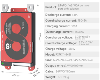 Le BMS conseillé est un modèle de la marque DALY. Il communique en Wifi via une application disponible pour smartphone. C’est via l’application que sont établis les paramètres de positionnement et les limites opérationnelles avec alarme. La notice du BMS est à lire avec attention pour prendre la maitrise de ce composant et établir les paramètres adaptés au motoculteur-Re. La plupart des paramètres proposés d’usine sont adaptés. Les paramètres à traiter sont :