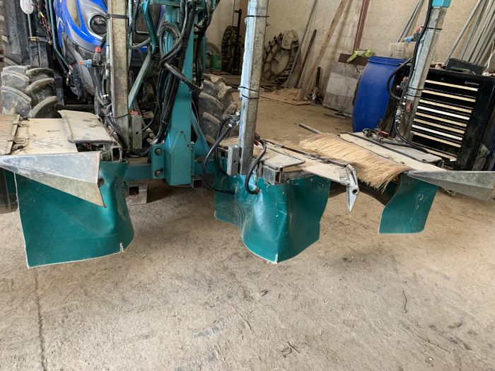 - Travail superficiel du sol avec des dents à 30 cm de part et d’autre du rang (extrémités des inter-rangs) pour éliminer le couvert et éviter les compétitions pour l’eau au printemps. Ce travail superficiel permet également d’oxygéner ces surfaces qui correspondent au passage des roues de tracteur. Les couverts sont laissés dans l’inter rang mais ils prennent moins de place pendant la période estivale. Le matériel utilisé est auto-construit à la CUMA avec une étoile Kress pour gratter entre les souches de vigne et des dents qui travaillent le sol superficiellement sur 30 cm autour des rangs.