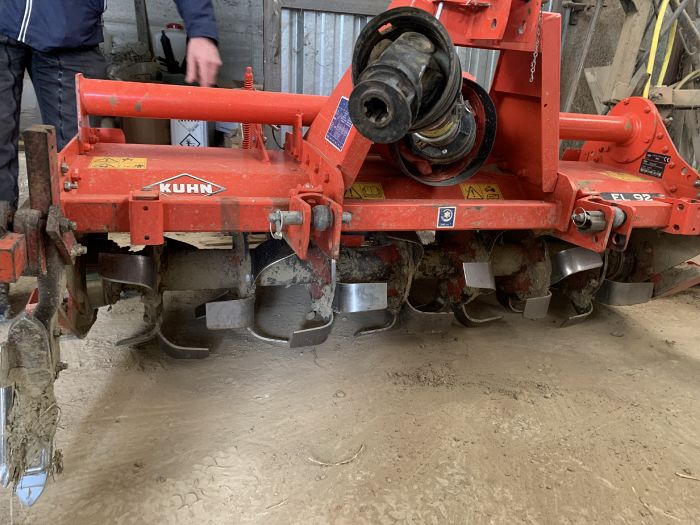 - Printemps : Destruction des légumineuses après le début de la floraison : scalper la féverole à 10 cm et les restes de bois de taille pour les mélanger aux 5 premiers cm de sol. Il va s'opérer une dégradation de la féverole en condition aérobie ce qui va éviter des pertes d’azote. La date de scalpage est choisie quand le sol est un peu humide. Si le sol est sec, il utilise un déchaumeur réglé à 5 cm de profondeur. Si le sol est trop humide, le rouleau faca est passé pour détruire les féveroles.