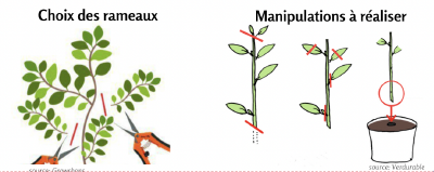 - Prendre des jeunes rameaux juste en dessous/ au dessus d’un bourgeon