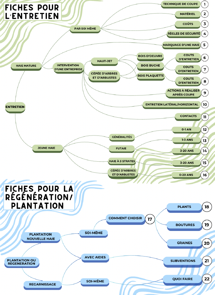 Deux arbres de décision ont été mis en place concernant d’une part l’entretien et la valorisation des haies et d’autre part la plantation et la régénération des haies. Les prix donnés dans ces fiches sont à titre indicatif, cela dépend de chaque chantier et de chaque prestataire.
