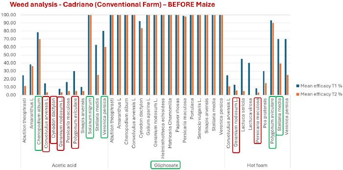 - Meilleure efficacité observée sur : Polygonum aviculare et Stellaria media.