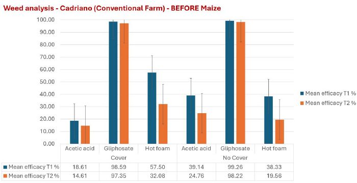 - En conventionnel : mousse chaude et acide acétique peu efficaces sans couvert.