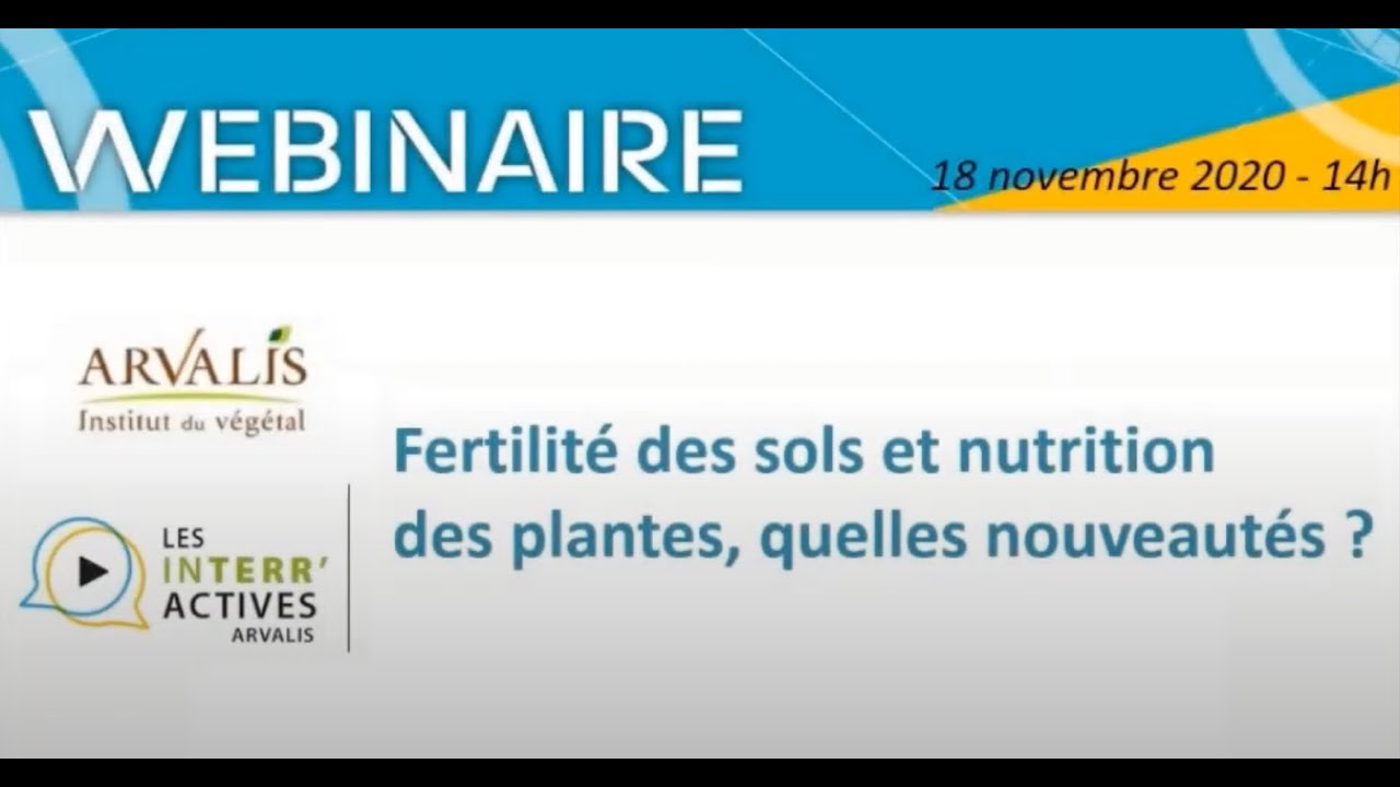 Rediffusion du Webinaire "Fertilité des sols et nutrition des plantes, quelles nouveautés ?" du 18 novembre 2020, par Arvalis