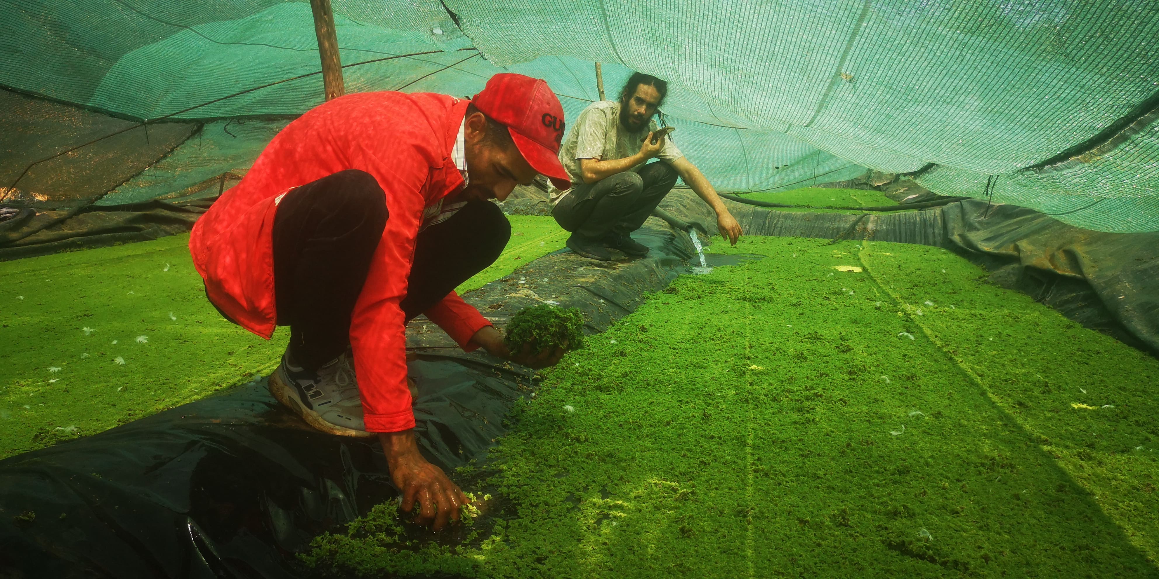 Fichier:Adile Dach récolte azolla petit bassin .jpg