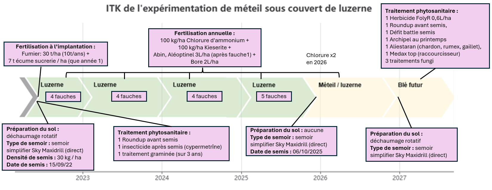 Description de l'itinéraire technique de la parcelle de test avec l'implantation de la luzerne et jusqu'à l'ajout du méteil sans oublié la culture futur.