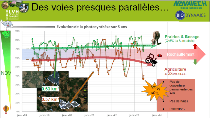 - Minimas de photosynthèse de plus en plus bas pour le système en agriculture conventionnelle, la réintroduction des cultures tous les ans, entraine une irrégularité de du NDVI.