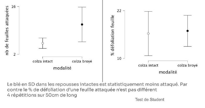 Le nombre de feuilles attaqué est lui plus important dans la modalité avec une destruction précoce (3 semaines avant) du colza.