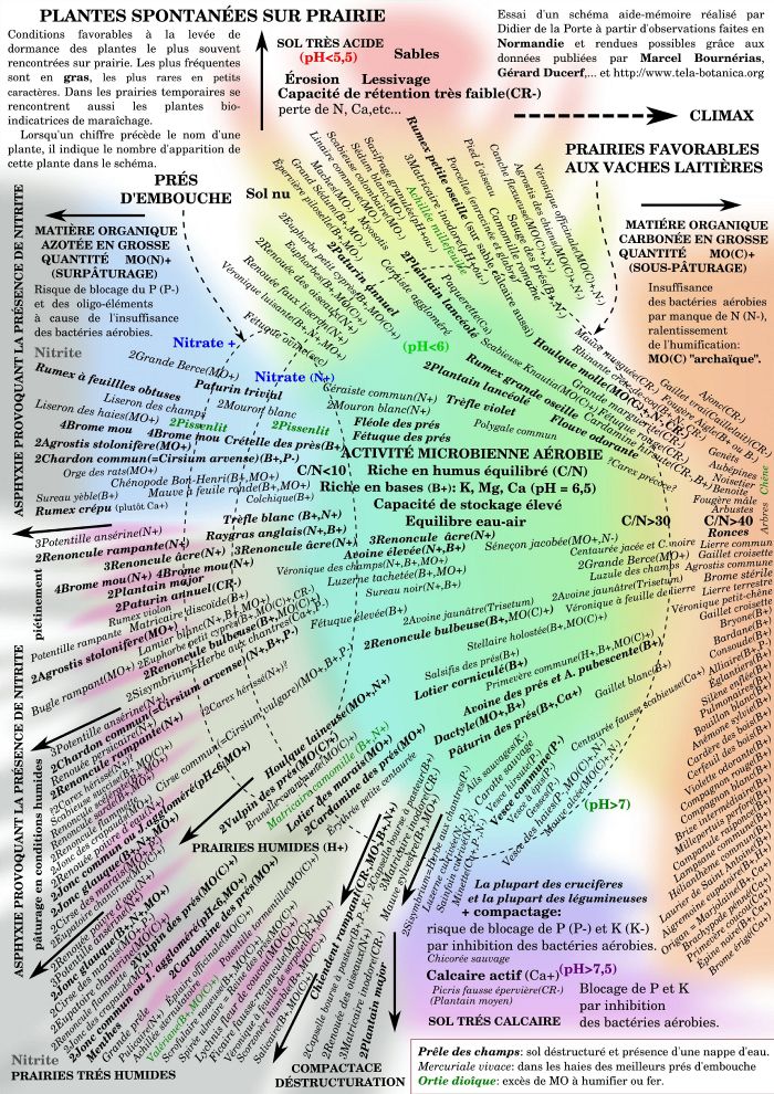 Tout comme le schéma pour les plantes spontanées présentes sur les systèmes maraîchers, il est possible d'effectuer un diagnostic de votre prairie en utilisant le schéma ci-contre :