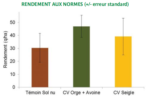 - T1 CV orge + avoine : Présence d’un couvert végétal (CV) d’orge (Orostar 75 %) et d’avoine (Fringante 25 %).