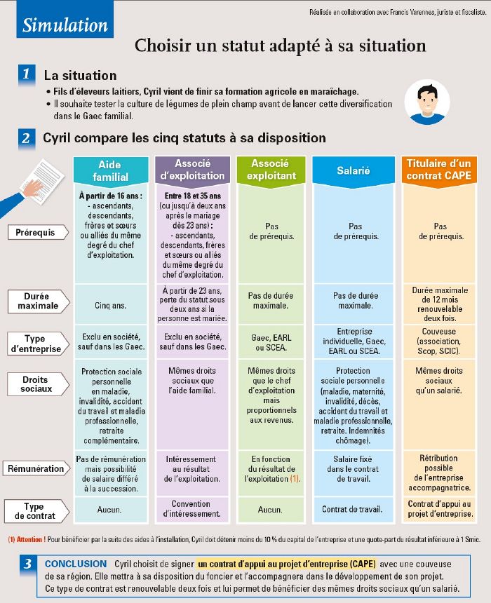 Les principaux statuts juridiques possibles en agriculture sont les suivants.