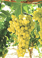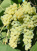 Grappes moyennes à grandes, cylindriques, longues, ailées, généralement compactes, pédoncules longs fins pas ou peu lignifiés; baies moyennes irrégulières, sphériques ou légèrement ovales, peau fine vert jaunâtre passant au jaune doré voire au roux à pleine maturité et recouverte d'une légère pruine blanchâtre peu persistante, chair juteuse tendre au léger goût de miel agréable ayant toutefois tendance à coller à la peau avec présence de pépins mous et donc pratiquement imperceptibles.
