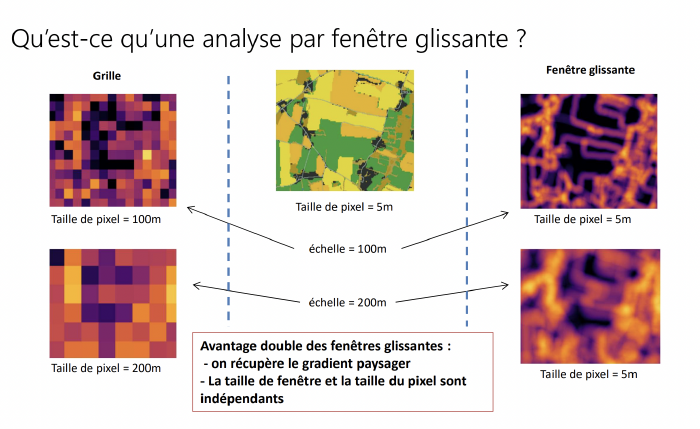- Moyenner les résultats dans un rayon de 250 à 300 mètres (fenêtre glissante), pour obtenir un indice global à l’échelle d’un paysage ou d’une parcelle.