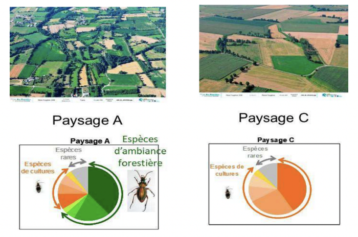 - Grain fonctionnel (vert) : réseau équilibré, bien connecté. Il faut maintenir les haies en bon état.