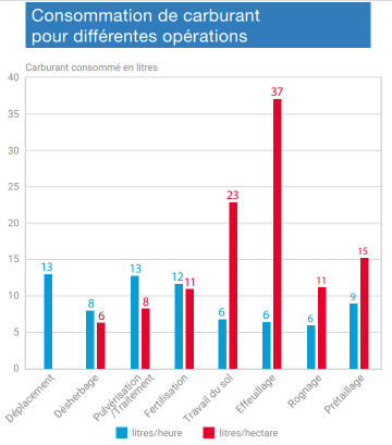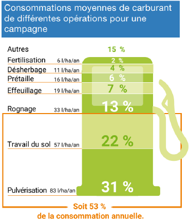 Rognage, désherbage mécanique, effeuillage sont des travaux dont la consommation en carburant est maintenant bien identifiée. Le travail se poursuit pour les autres opérations viticoles, notamment pour les vendanges et l’utilisation de tarière qui viendront compléter le panel.