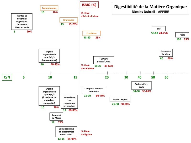 - MO très digestibles (ex : couverts végétaux, pailles, etc.).