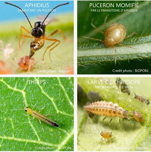 - Les plus connus d’entre eux sont les coccinelles pour leur prédation sur des ravageurs comme les pucerons, les psylles, les cochenilles, les acariens, les thrips,...