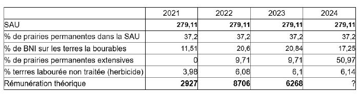 Le montant ainsi obtenu par ha est multiplié par la SAU totale de l’exploitation pour obtenir la rémunération potentielle de l’année.