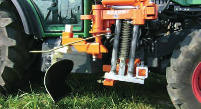 - Orbitrol : ce système est basé sur une pièce constitutive d’une direction assistée, l’orbitrol. Un palpeur pilote la rotation du servomoteur (orbitrol) et permet l’effacement de l’outil devant le pied. Ce système peut être muni de différents accessoires pour moduler le mouvement d’effacement devant les pieds (parallélogramme déformable ou point de pivot).