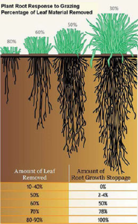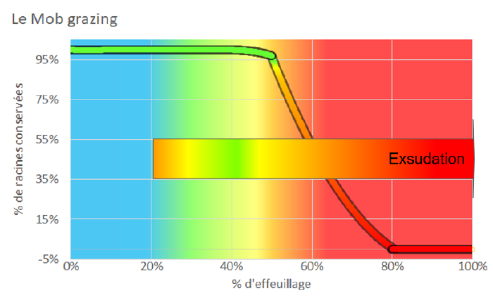 L'objectif est de faire pâturer entre 30 et 50% d'effeuillage de la plante, pas plus pour ne pas abîmer les racines et avoir un maximum d'exsudats racinaires.