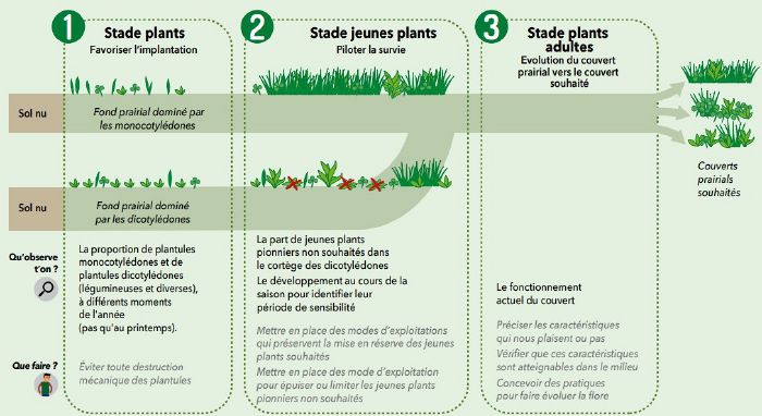- de concevoir, en fonction des observations réalisées, un ensemble de pratiques pour orienter la succession des espèces végétales vers ce qui est attendu.