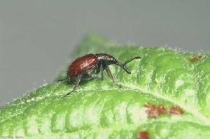 Frappage sur 100 arbres (1 branche par arbre): compter le nombre de rhynchites rouges