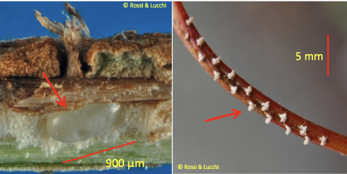 - aux blessures de ponte, qui peuvent entraîner le dessèchement de jeunes pousses,