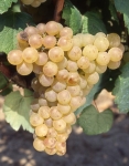 Grappes moyennes à grandes, cylindriques, compactes, ailées; baies petites à moyennes de grosseur irrégulière, sphériques ou légèrement aplaties, blanches devenant rosées à complète maturité, peu juteuses.