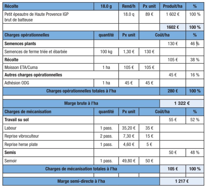 - Le petit épeautre est une céréale peu exigeante en azote et résistante aux maladies, elle est donc souvent placée en 2ème paille (sauf pour l’IGP petit épeautre de Provence qui ne doit pas suivre une céréale à paille).