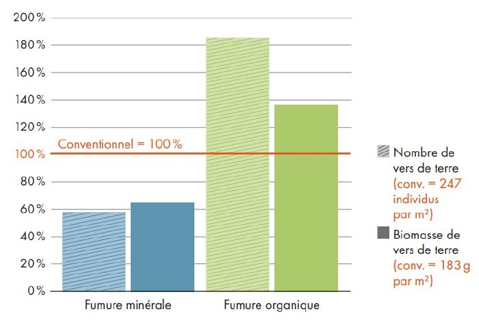 - Les engrais organiques ne doivent être incorporés que superficiellement. Les résidus de culture profondément enfouis sont nocifs pour les vers de terre, car ils peuvent créer des conditions anaérobies néfastes lors de leur décomposition.
